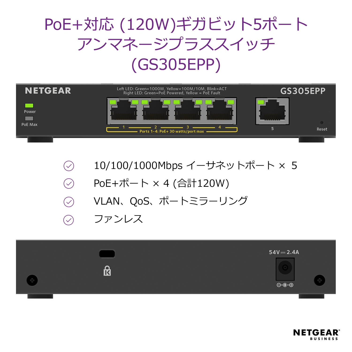 ギガビット5ポート アンマネージスイッチ【在庫以上のご注文の場合は、お問い合わせください】| GS305-300JPS| ¥3,042(税込) POE+対応 (63W) ギガビット5ポート アンマネージスイッチ| GS305P-200JPS| ¥9,900(税込) POE+対応 (83W) ギガビット5ポート アンマネージスイッチ【在庫欠品中のため、発送日はご注文後にご連絡いたします】| GS305PP-100JPS| ¥12,500(税込) ギガビット5ポート アンマネージプラススイッチ【在庫以上のご注文の場合は、お問い合わせください】| GS305E-100JPS| ¥4,530(税込) POE+対応 (63W) ギガビット5ポート アンマネージプラススイッチ【在庫欠品中のため、発送日はご注文後にご連絡いたします】| GS305EP-100JPS| ¥12,035(税込) POE+対応 (120W) ギガビット5ポート アンマネージプラススイッチ【在庫欠品中のため、発送日はご注文後にご連絡いたします】| GS305EPP-100JPS| ¥16,630(税込)