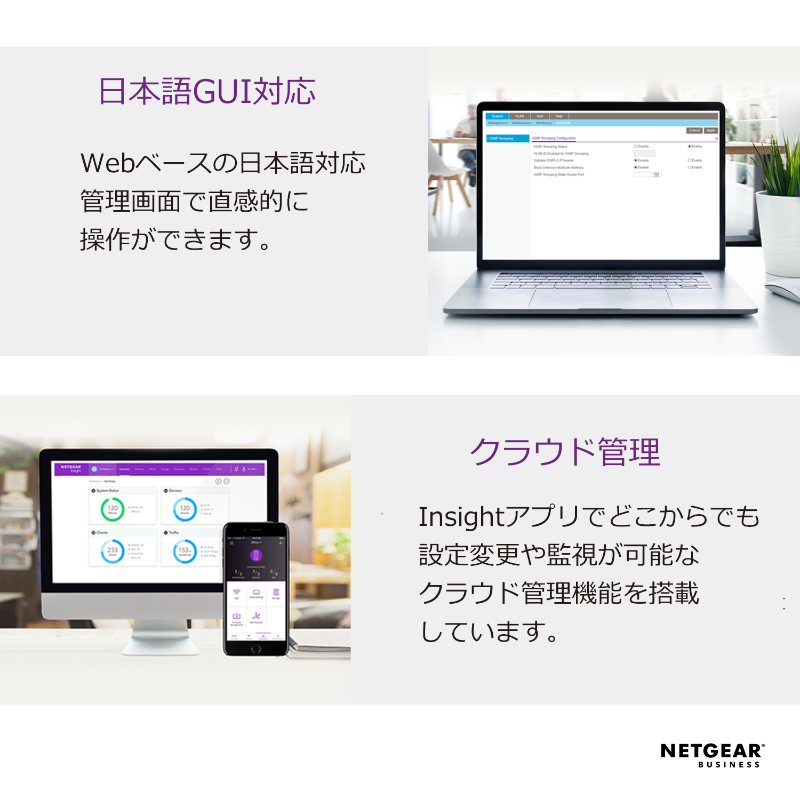 商品情報 【Ultra60 PoE++対応 (295W) マルチギガ8ポート SFP+ 2スロット スマートスイッチ】 メーカーサイトを見る ・10G/5G/2.5G/1G/100M × 4ポート、2.5G/1G/100M × 4ポート、SFP+×2スロット搭載のスマートスイッチ ・2.5G/5Gの通信速度は既存のCat5e/Cat6ケーブルを利用できるため、ケーブル変更の手間やコストをかけずにネットワークの速度を2.5倍/5倍にすることができる。 ・8ポートがUltra60 PoE++に対応しており、1ポートあたり60W、合計295Wの電力供給が可能で、WiFi 6対応APや高画質カメラなどの接続に最適。 ・Insightクラウド管理対応、スタンドアロンモードに設定することで通常のスマートスイッチとしても使える ・Insightアプリ、Web GUIどちらも日本語での表示が可能。 ・リンクアグリゲーション(固定/LACP)、ジャンボフレーム対応、スパニングツリー(802.1D, 802.1W, 802.1S) ・IGMPスヌーピング(マルチキャスト)、レートリミット、ブロードキャストストーム抑制、プロテクトポート、802.1X(RADIUS)、ループ防止 ・ラックマウントキット付属 ・リミテッドライフタイム保証