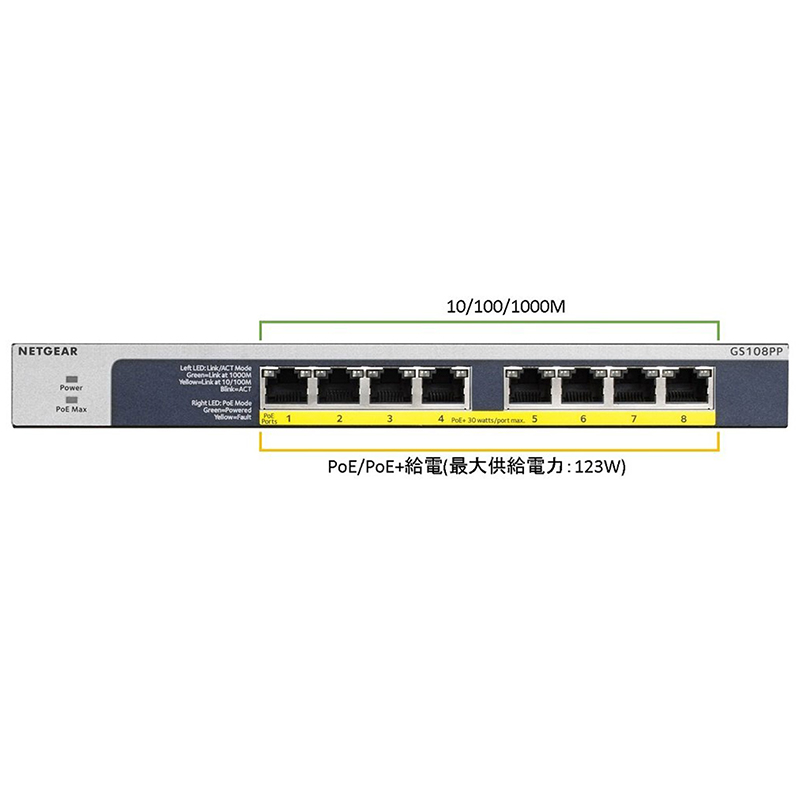 PoE+対応 (123W) ギガビット8ポート アンマネージスイッチ【在庫以上のご注文の場合は、お問い合わせください】