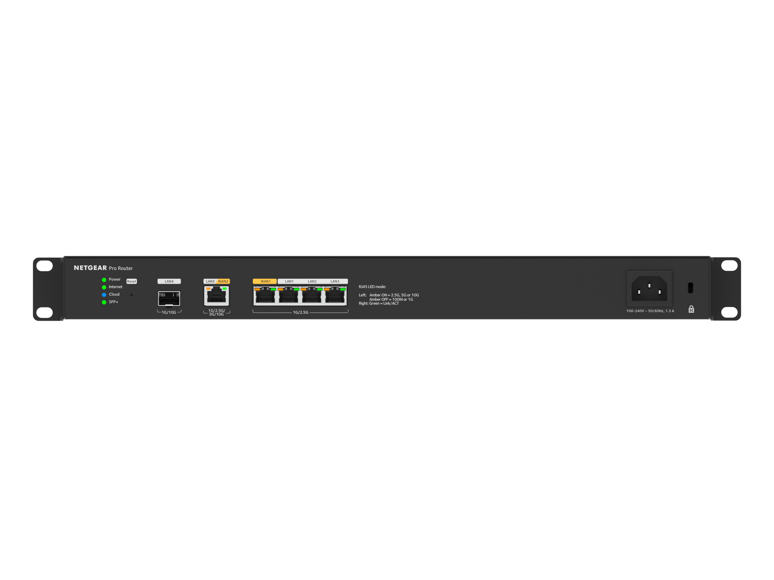 商品情報 Insightアプリ&クラウド 10G/マルチギガ ビジネスルーター メーカーサイトを見る 10G/マルチギガビットおよび2.5GデュアルWANポート(フェールオーバー付き) 10G/マルチギガビットポート× 1 (WANポートと共有)、2.5Gイーサネットポート× 3、10G SFP+ポート× 1(長距離バックホール用またはプロバイダーファイバモデムへの接続用)を備えた高性能ハードウェア NETGEAR Insightによる制御、管理、監視 NETGEAR Insight アプリ&クラウド対応ルーター、アクセスポイント、スマートスイッチを一元管理 業界標準の19インチラックに対応するラックマウント型 (ラックマウントキット付属) ファイアウォールによる保護 セキュリティ保護されたサイト間VPN接続を作成するためのIPsec設定 3年間のハードウェア保証