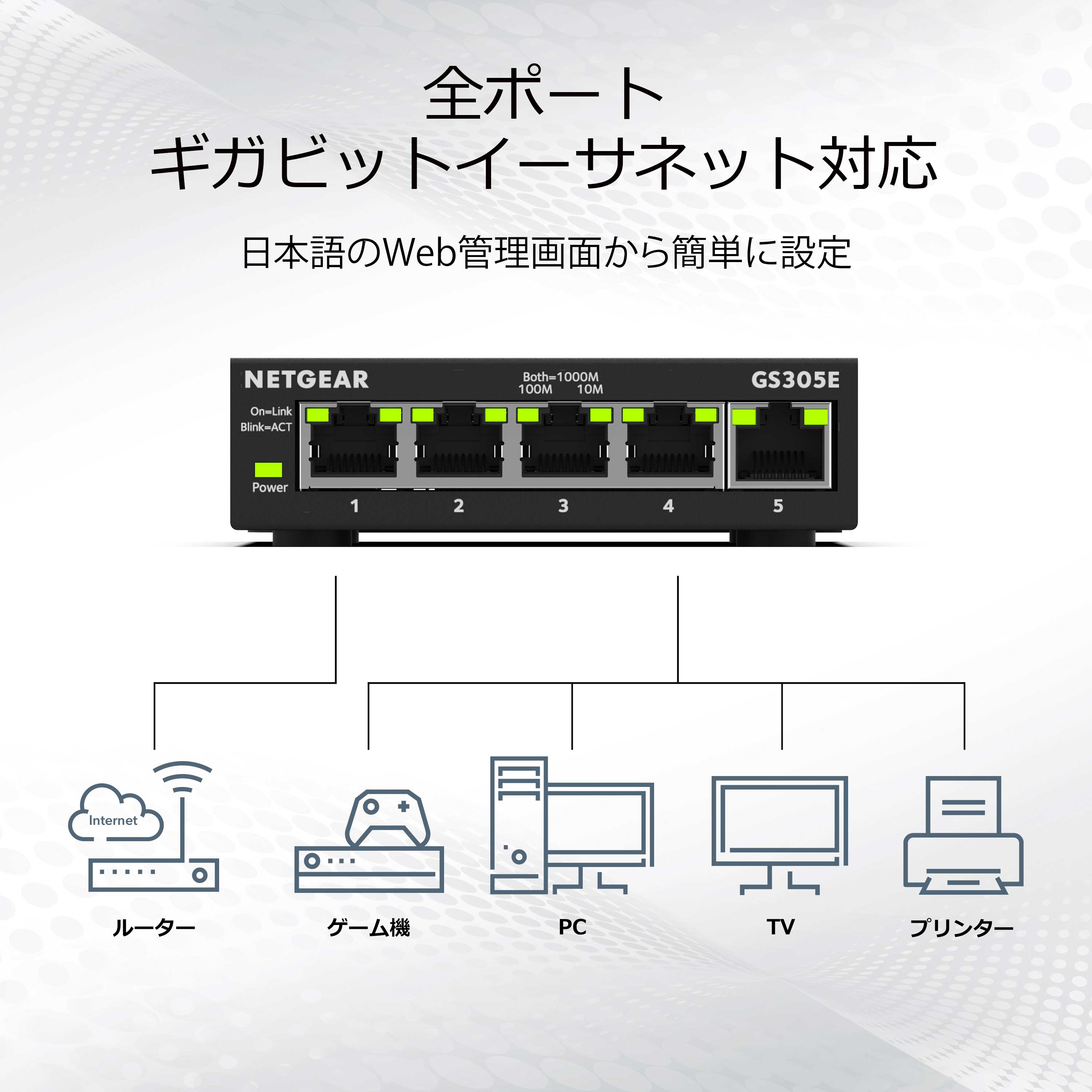 ギガビット5ポート アンマネージスイッチ【在庫以上のご注文の場合は、お問い合わせください】| GS305-300JPS| ¥3,042(税込) POE+対応 (63W) ギガビット5ポート アンマネージスイッチ| GS305P-200JPS| ¥9,900(税込) POE+対応 (83W) ギガビット5ポート アンマネージスイッチ【在庫欠品中のため、発送日はご注文後にご連絡いたします】| GS305PP-100JPS| ¥12,500(税込) ギガビット5ポート アンマネージプラススイッチ【在庫以上のご注文の場合は、お問い合わせください】| GS305E-100JPS| ¥4,530(税込) POE+対応 (63W) ギガビット5ポート アンマネージプラススイッチ【在庫欠品中のため、発送日はご注文後にご連絡いたします】| GS305EP-100JPS| ¥12,035(税込) POE+対応 (120W) ギガビット5ポート アンマネージプラススイッチ【在庫欠品中のため、発送日はご注文後にご連絡いたします】| GS305EPP-100JPS| ¥16,630(税込)