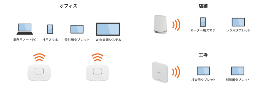 現場ごとに異なる環境にそれぞれ適した機器構成を設計し、性能・品質・費用のバランスがとれた無線LANを導入可能です。
